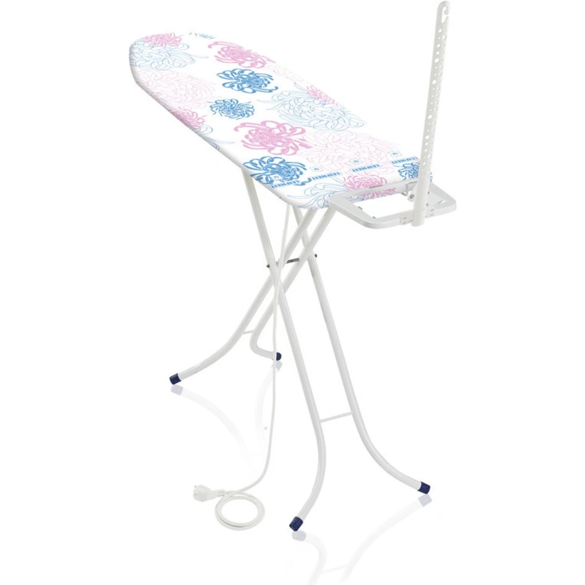 Moderní bavlněný potah Trend Flowers M nejen zajišťuje plynulý skluz žehličky, ale také dodává prknu stylový vzhled. Díky hmotnosti 5 kg je prkno snadno přenosné a skladné.